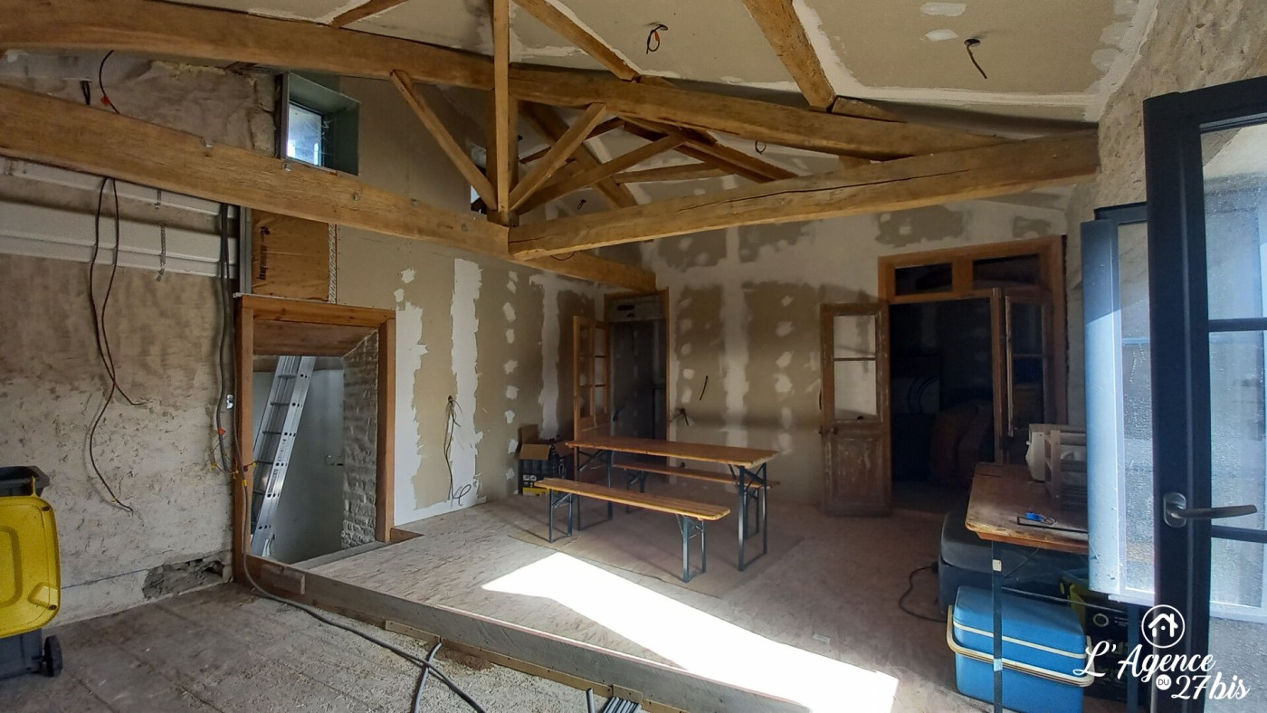 L'agence du 27 bis vous présente cette grande maison en pierre à finir de rénover située dans le bourg d'Arçais.